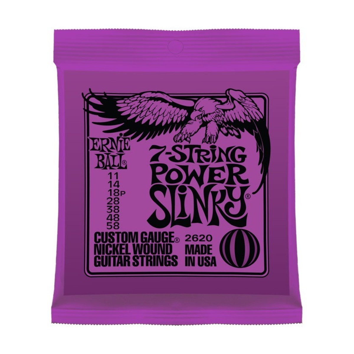 7-string Power Slinky Nickel Wound .011 – .058 Purple pack – The Ernie Ball Company was the first to offer rock strings with the creation of Slinkys and further revolutionized the market by offering guitarists Custom-Gauge single strings. Slinkys are the string of choice for many professional artists such as Eric Clapton Jimmy Page Slash Angus Young John Mayer John Petrucci Steve Lukather and Steve Morse.