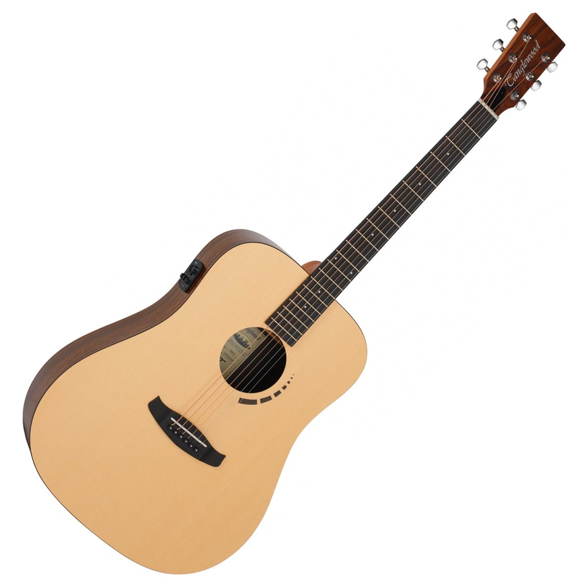 The Tanglewood TM5E Metropolitan Dreadnought is a bold acoustic built for players who want power and presence. Its classic dreadnought body delivers rich projection with strong bass response while keeping the mids and highs clear and balanced. This makes it an ideal choice for singer-songwriters and rhythm players needing a guitar that can cut through with confidence. A solid spruce top brings bright articulate tone that responds well to both light fingerpicking and energetic strumming. Paired with koa back and sides it adds warmth midrange character and a striking natural grain that looks as good as it sounds. When its time to plug in the Tanglewood TEQ-G3 EQ system delivers an accurate amplified sound with intuitive controls that let you fine-tune your tone quickly and simply. Finished with an ebony fingerboard and bridge chrome die-cast tuners and phosphor bronze strings the TM5E is a reliable companion that blends classic acoustic character with modern stage-ready versatility.